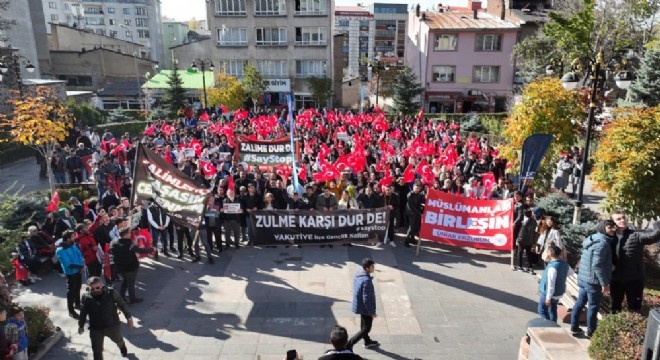 Basın açıklamasının ardından toplanan kalabalık sloganlarla Yakutiye kent meydanına kadar yürüdü
