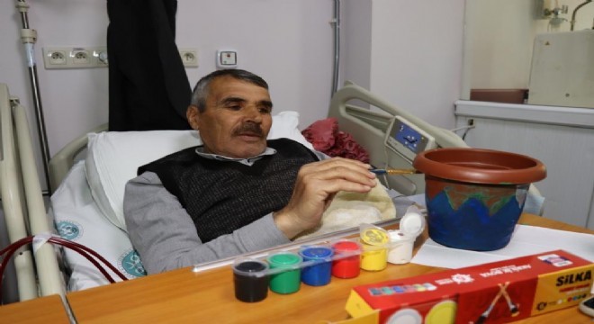 Oltu Devlet Hastanesinde diyalize giren hastalar saksı boyaması yaparak diyaliz saatlerini keyifli hale getiriyorlar.