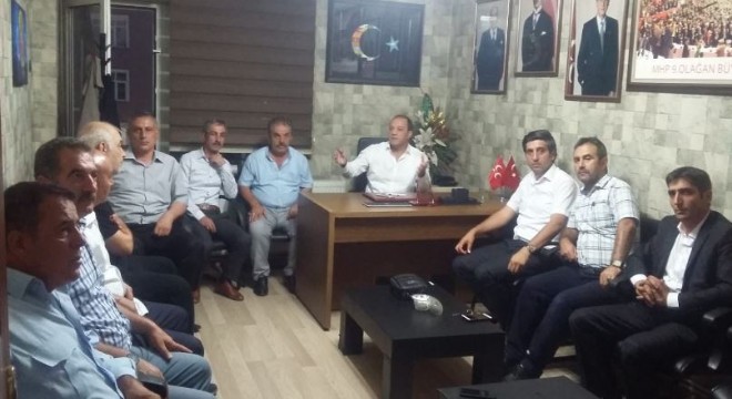 MHP Erzurum İl Başkanı Naim Karataş’ın İl binasında yapmış olduğu toplantıya, Türkiye Kamu-Sen İl Temsilcisi Mucip Gözeger, şube başkanları ve TÜRKAV Erzurum Şube Başkanı Umut Yaşar Bozkurt katıldı.