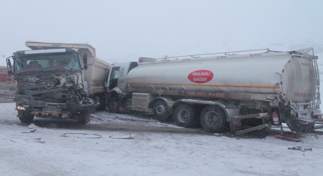 Bayburt-Erzurum karayolu, Kop Dağı tüneli şantiyesi yakınlarında buzlanma nedeniyle kayan tır, bir kamyona ardından bariyerlere çarptı.