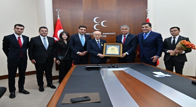 Milliyetçi Hareket Partisi (MHP) Genel Başkanı Devlet Bahçeli'yi, Uluslararası Türk Kültürü Teşkilatı (TÜRKSOY) heyeti ve Ahmed Cavad ailesinin fertlerinden Nicat Emiroğlu Güliyev, Anar Ahundzade, Mehin Banu Guliyeva ve Yılmaz Ahundzade ziyaret etti.
