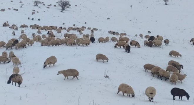 Öte yandan yine Aşkale'nin Sarıbaba köyünde koyunculuk yapan çiftçi de erken bastıran kar yağışı nedeniyle hayvanlarının kışlık yiyeceğini tam temin edememesi neticesinde karla kaplı dağlarda koyunlarını otlattı.