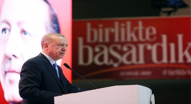 Cumhurbaşkanı Erdoğan, "Tek millet, tek bayrak, tek vatan, tek devlet. Bir olacağız, iri olacağız, diri olacağız, kardeş olacağız, hep birlikte Türkiye olacağız" dedi.